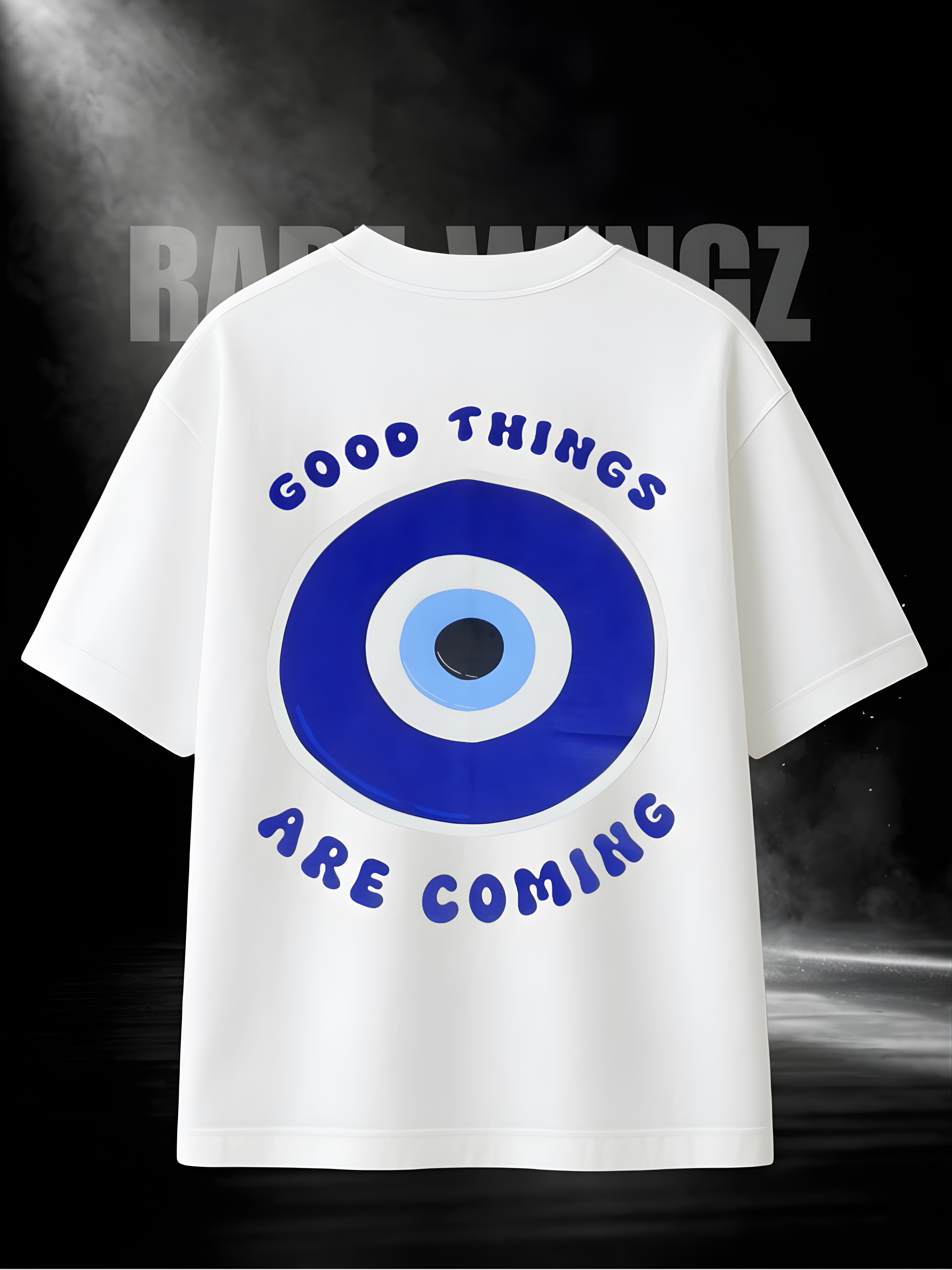 Made from 100% premium bio-washed cotton (260 GSM), this unisex streetwear tee features a clean white base with bold ‘GOOD VIBES’ text on the front and an eye-catching Evil Eye ‘Good Things Are Coming’ graphic on the back — symbolizing protection and good energy.